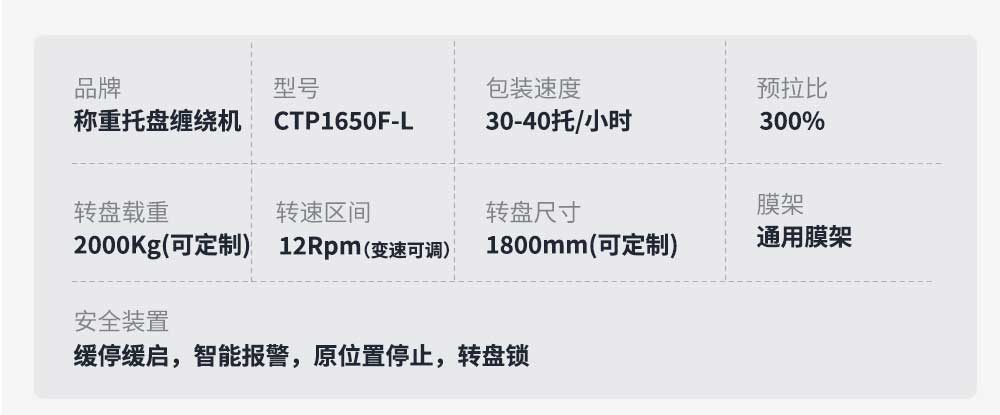 大宏佳森稱重托盤纏繞包裝機CTP1650F-L自動稱出來貨物重量,適用于散貨的集裝箱運輸散貨托盤的包裝