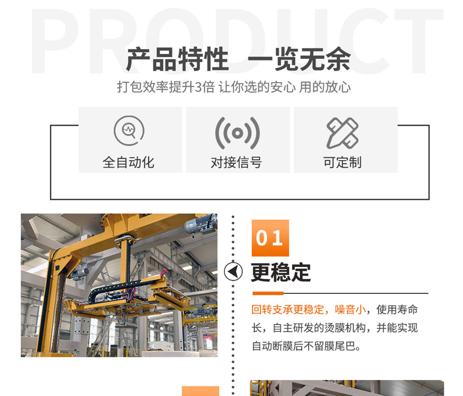可實現流水線包裝,貨物不動,設備圍繞貨物纏繞