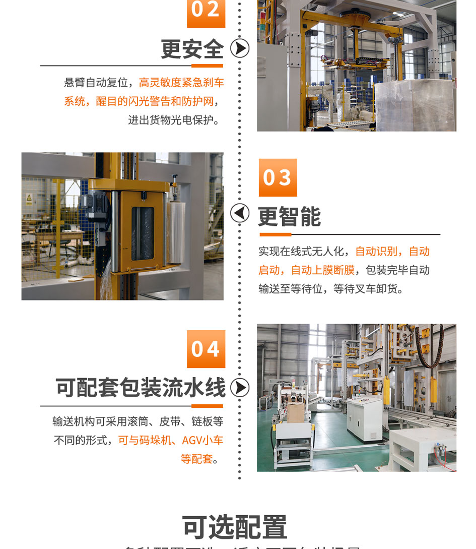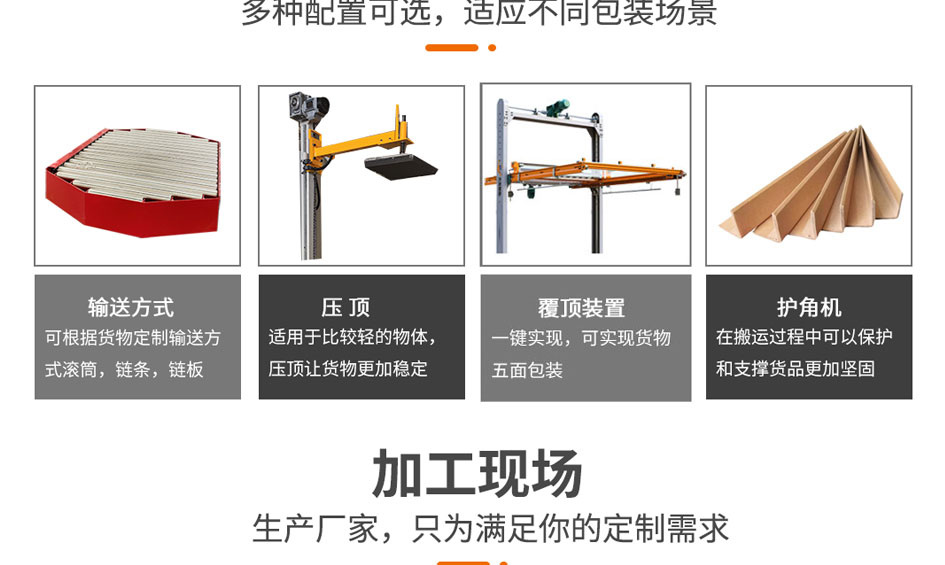 適用于較輕較高且碼垛后不穩定的產品或較重貨物的裹包
