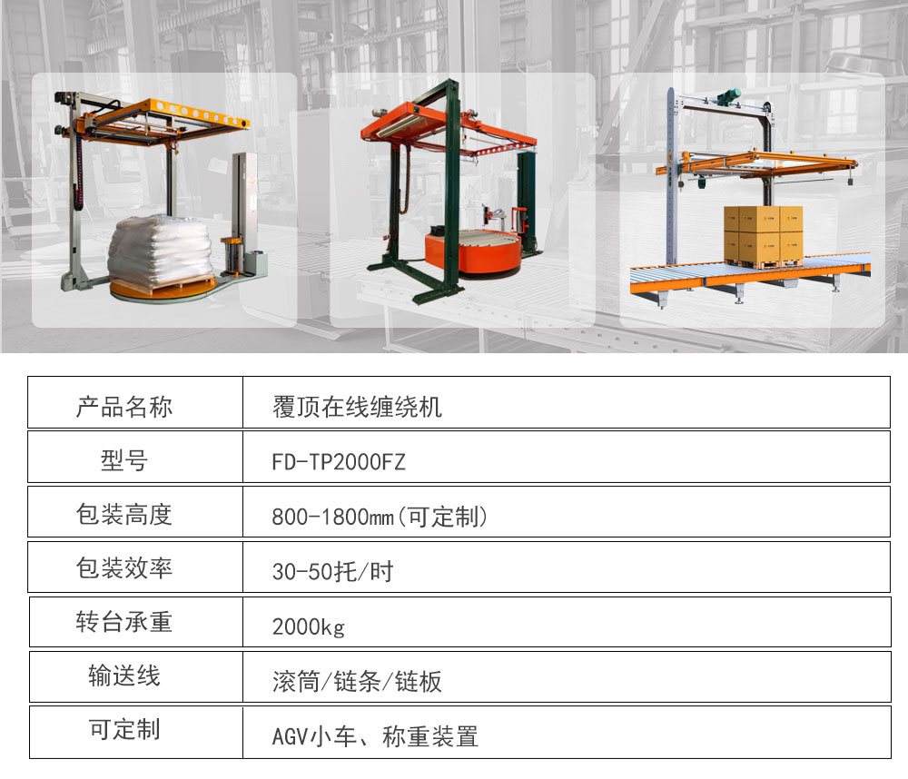 | 覆頂 | 可選配,頂部自動覆膜,實現5面自動化包裝 |