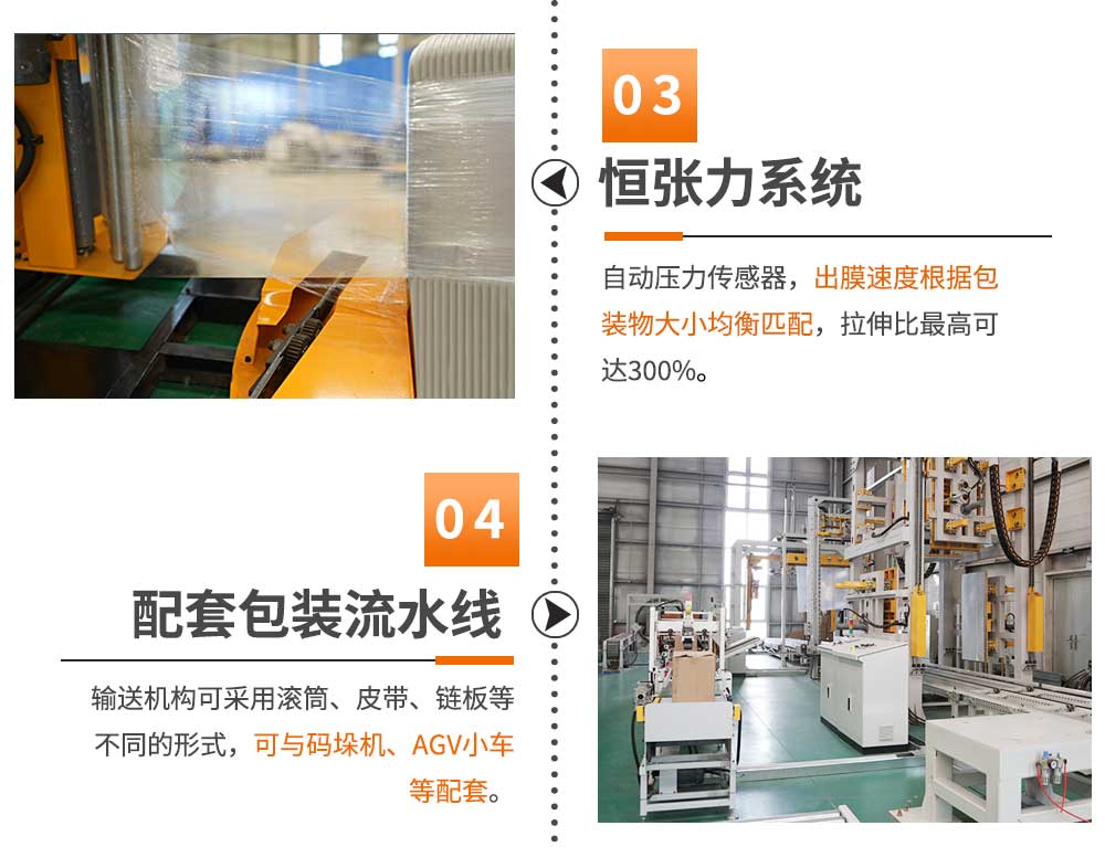 可根據(jù)不同的產(chǎn)品和現(xiàn)場(chǎng)的實(shí)際需求,定制不同的包裝系統(tǒng),自動(dòng)完成貨物的感測(cè)、包裝、輸送等全過程,